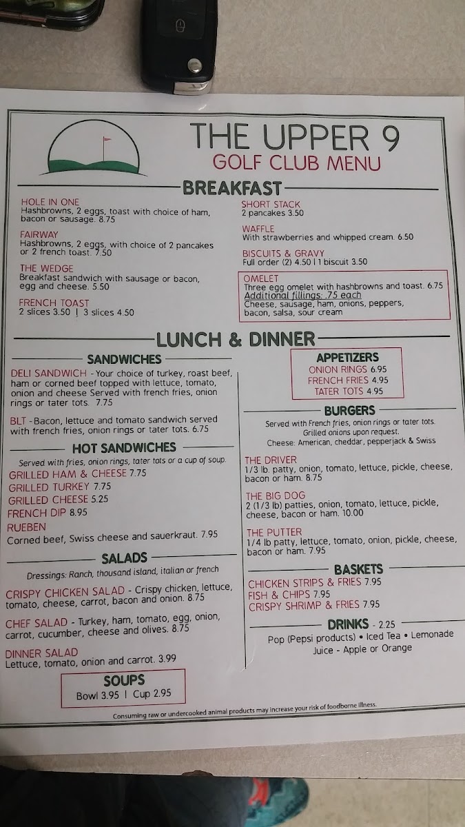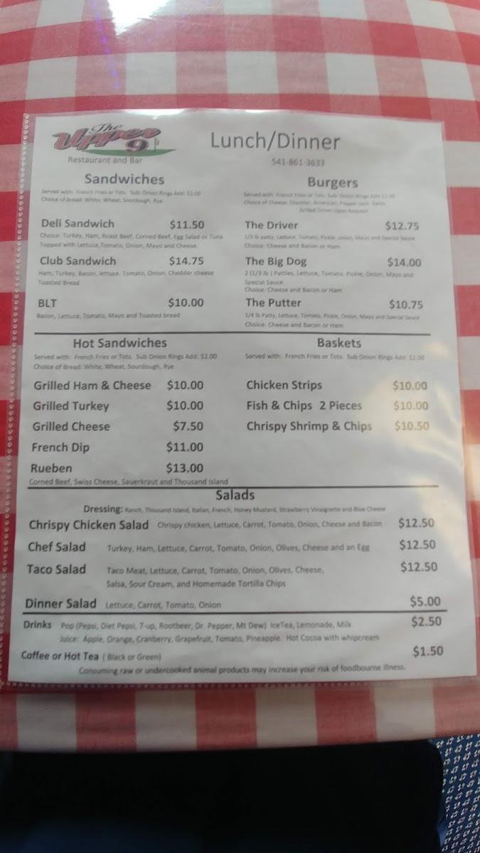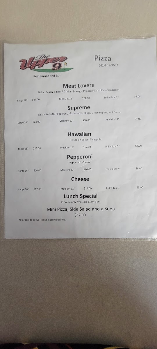 The Upper 9 Menu